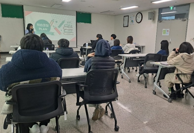 학생들은 자기 학습 습관에 대한 표준화 검사 실시 후 학습 방법에 대한 고민을 나누고 학습코칭을 받았다. 또 인문계열 범죄심리학과, 자연계열 디스플레이 공학과 대학생과 함께 진로 멘토링 프로그램을 통해 공부하면서 힘든 점이나 노하우를 듣고 대학 진학 후 진로 관련 설명을 들었다.
