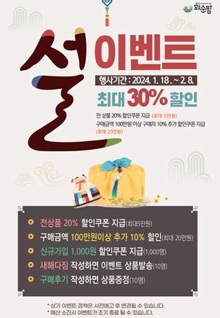 ![]() 화순팜, 설맞이 최대 30% 할인 이벤트 실시 |