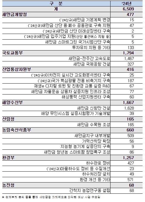 ![]() ‘24년도 새만금 사업 지역 국가재정 투입현황(억원) |