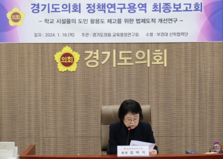 연구회 회장인 김미리 교육행정위원장은 “이번 우리 위원회 연구단체의 연구가 단순히 연구로만 끝나는 것이 아니라 시설 개방을 어렵게 만드는 법제도적 한계와 학교현장에서의 운영상 문제점 등을 실질적으로 해결할 수 있는 구체적인 방안 마련으로 이어져야 한다”고 말하고, “도교육청에서는 학생들의 안전한 학교시설의 보호를 위한 실효성 있는 안전대책 마련과 함께 학교시설 개방에 따른 추가 인력 및 예산지원 등 행·재정적 지원이 이루어지도록 장기적인 로드맵을 제시해달라”고 주문했다.
