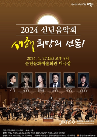 순천문화예술회관 관계자는 “새해 희망의 메시지를 담은 음악이 시민들에게 일상의 행복과 활력을 선사할 것으로 기대하며 올 한해도 다채로운 공연으로 시민들을 찾아가겠다”고 말했다.