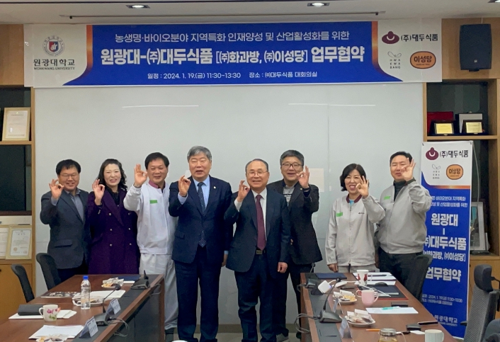㈜대두식품의 조성용 대표이사는 이날 협약 체결을 통해 산업현장에 필요한 인력 확보와 우리 지역의 인재들이 자신의 꿈을 펼칠 기회를 제공하기 위해 대두식품의 기술연구소와 농생명·바이오사업단이 협력해 기초연구를 진행할 예정이라고 밝혔다.