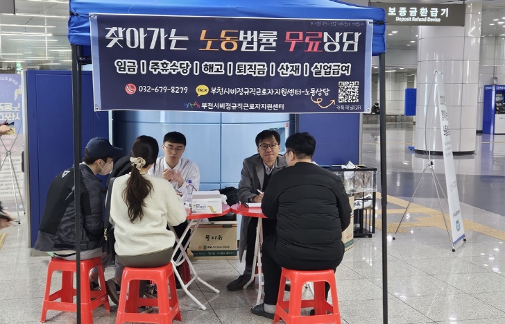 도는 이번 경기도 마을노무사와 함께하는 찾아가는 임금체불 상담방식 외에도 ▲의정부역(1월 23일, 25일, 30일, 2월 1일, 6일, 7일 상담시간 12시-14시) ▲행신역(1월 24일, 31일, 2월 7일, 상담시간 14시-18시) ▲운정역(2월 6일, 상담시간 17시-19시) ▲금촌역(2월 7일 상담시간 17시-19시) ▲춘의역(1월 23일, 30일, 2월 6일, 상담시간 17-19시) ▲평택역(1월, 22일, 23일, 24일, 29일, 30일, 31일, 2월 5일, 6일, 7일, 상담시간 14시-20시) 지역 노동자지원센터와 협력해 전철역사에서 상담소를 운영한다. 도 노동권익센터는 전화(031-8030-4541) 또는 ‘경기도 스마트 마을노무사 플랫폼’을 통해 예약 신청하면 상담이 가능하다.