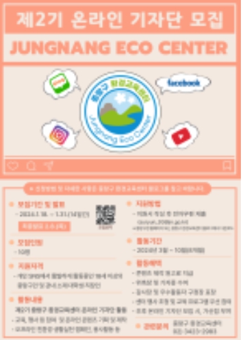 ![]() 제 2기 중랑구 환경교육센터 온라인 기자단 모집 포스터 |
