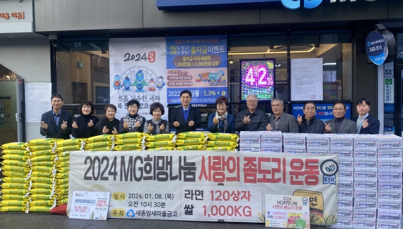 김성희 새종암새마을금고 이사장은 “이웃들을 위해 나눔에 동참할 수 있어 기쁘다”라며 “앞으로도 지역사회에 관심을 가지고 따뜻한 마음과 함께 나눔을 이어나가겠다”라고 말했다.