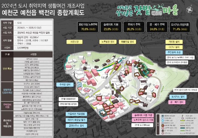![]() 상생발전기틀 자료사진 백전리 ‘2024년 도시형 취약지역 생활여건 개조사업’ 최종 선정 |