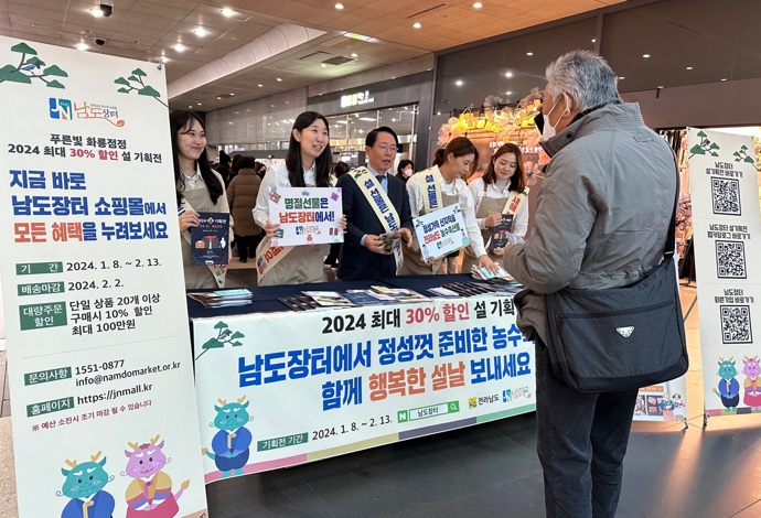남도장터는 29일 서울역에서 남도장터 설 기획전과 고향사랑기부제 홍보활동에 나서 시민과 방문객에게 다양한 기념품을 배부할 예정이다.