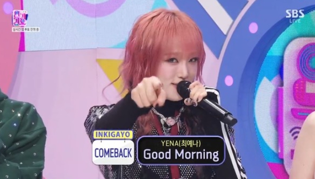 최예나는 21일 방송된 SBS '인기가요'에 출연해 세 번째 미니 앨범 'GOOD MORNING(굿모닝)'의 동명의 타이틀곡 'Good Morning(굿모닝)' 무대를 선보였다.