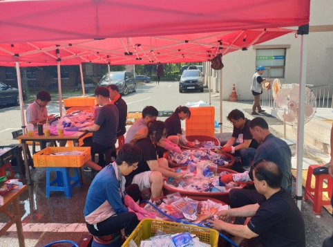 ![]() 아이스팩을 재활용해 무료나눔하는 마을공동체 활동모습 |