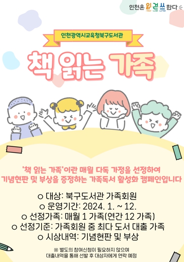 ![]() 인천광역시교육청북구도서관, 가족 독서캠페인 운영 |