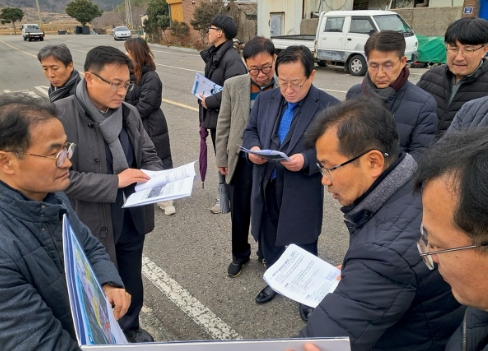 또 개도의 접근성 향상을 위한 백야 부터 개도 도로개설사업 중 해상구간 2개소의 교량 기초 작업현황과 개도 간척지 내 연결도로 연약지반 처리 과정을 둘러보았다.