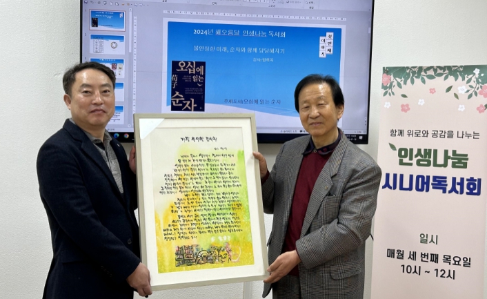 ![]() 시니어독서회 회원 시화전 작품 기증 |