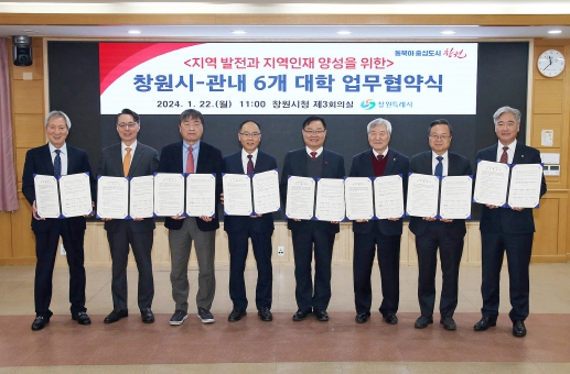 이날 협약식은 지역전략산업과 연계한 지역정주 인재양성 시스템 구축을 위해 마련됐으며, 홍남표 창원시장과 창원대ㆍ경남대ㆍ창신대ㆍ마산대ㆍ창원문성대학교 총장과 한국폴리텍Ⅶ대학 권역학장, 창원시정연구원장이 참석했다.