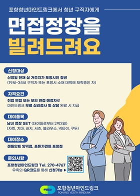 ![]() 포항시 북구보건소 청년마인드링크, 면접 정장 무료 대여 서비스 운영 |