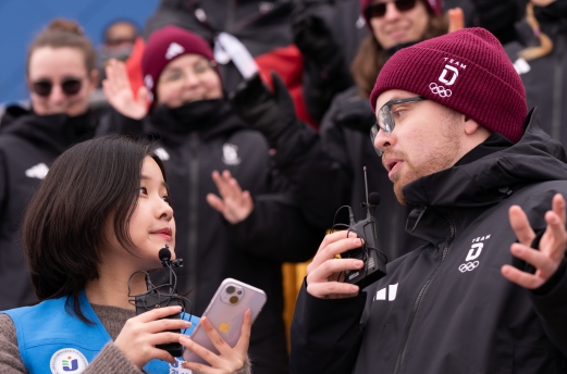![]() 전남교육청 청소년기자단 학생들이 ‘강원동계청소년올림픽’ 현장에서 선수들과 인터뷰를 진행하고 있다. |