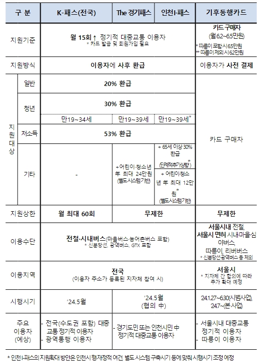 한편, 경기도와 인천시는 K-패스를 기반으로 경기·인천 주민에게 추가 혜택을 제공하는 “The 경기패스”와 “인천 I-패스” 사업을 준비 중이다.