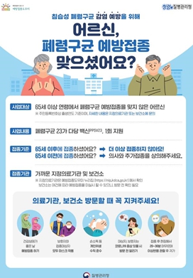 ![]() 청주시, 2024년 어르신 폐렴구균 무료예방접종 안내 |