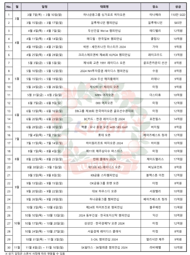 ![]() 2024시즌 KLPGA 정규투어 일정 |