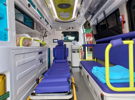 이번에 추가 배치된 특수구급차는 환자실이 넓어 전문 응급처치가 가능하며 평상시에는 중환자용 특수급차로, 감영병 환자 발생 시는 음압구급차로 활용하는 다목적 중형 특수구급차이다.