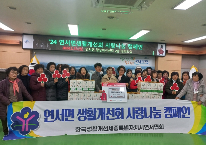 윤일형 연서면장은 “매년 따뜻한 마음을 나눠주시는 연서면 생활개선회에 감사드리며 복지사각지대 등 어려운 분들에게 잘 전달하도록 하겠다”고 말했다.
