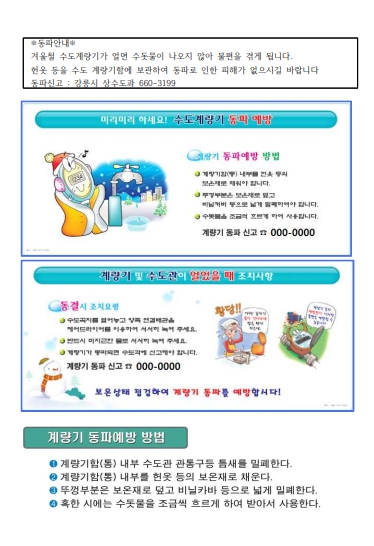 ![]() 강릉시, 한파로 인한 수도계량기 동파 방지 안내 |