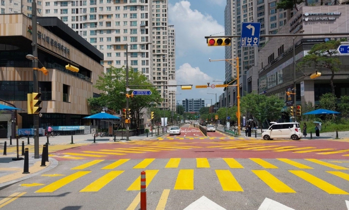구는 이번 사업을 통해 어린이보호구역임을 쉽게 인식할 수 있도록 시설물의 시인성을 대폭 개선하는데 중점을 뒀다. 운전자의 주의를 환기 시켜 감속을 유도하기 위해 ▲ 노란색 횡단보도 ▲ 옐로카펫 ▲ 발광형 교통표지판 ▲ 과속·불법주정차 단속 카메라를 설치했다. 또한 보행 편의와 안전을 위해 ▲ 바닥 신호등 ▲ 신호등 음성안내 보조장치 ▲ 신호등 주변 광고물 부착방지 시설 ▲ 미끄럼방지 도로 포장 ▲ 안전펜스 등의 안전 시설물을 설치했다.