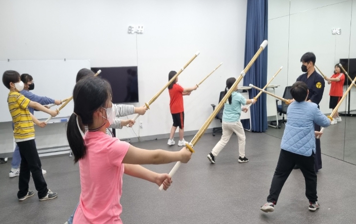 ![]() 2023년 지원단체 ‘금천검도사랑’에서 청소년들이 검도교실에 참가하고 있다. |