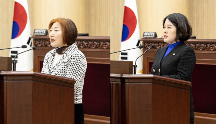 ![]() 왼쪽이 이민청 설치 촉구 건의안을 대표 발의한 현옥순 의원이고 오른쪽은 이민청 안산 유치 건의안을 대표 발의한 황은화 의원의 모습. |
