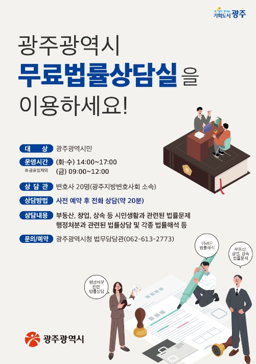 2011년 시작한 무료법률상담실은 최근 3년간 연평균 687명이 이용하는 등 호응을 얻고 있다. 광주시가 실시한 ‘2023년도 행정서비스 고객만족도 조사’에서 이용자의 99.8%가 만족한다고 답했다.