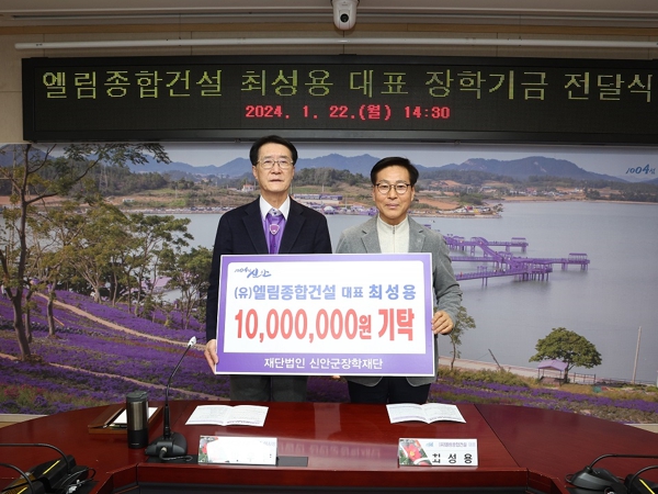 ![]() (유)엘림종합건설 대표 최성용, 신안군에 지역인재 양성 장학기금 1천만 원 기탁 |