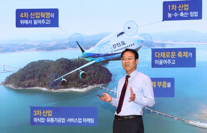 강진원 강진군수는 “지방소멸 위기 대응과 지역 활성화의 동력을 축제와 관광을 통해 얻고자 한다. 이를 통해 생활인구를 늘리겠다. 관광산업이 앞에서 끌고 1, 3차 산업을 양 날개로 4차 산업혁명이 이를 뒷받침해 강진을 날아오르게 하겠다”고 말했다.
