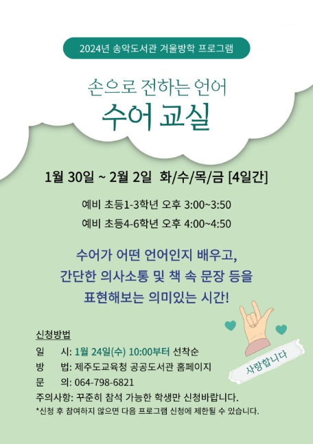 오는 1월 24일부터 제주도교육청 공공도서관 홈페이지에서 사전 신청을 받을 예정이다.