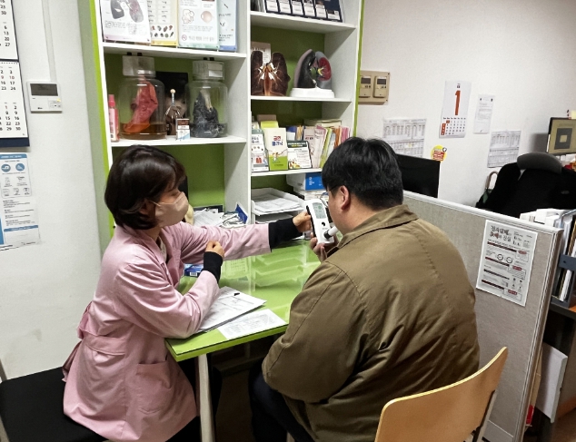 ![]() 금연 클리닉 운영 사진 : 금연 상담하는 모습 |