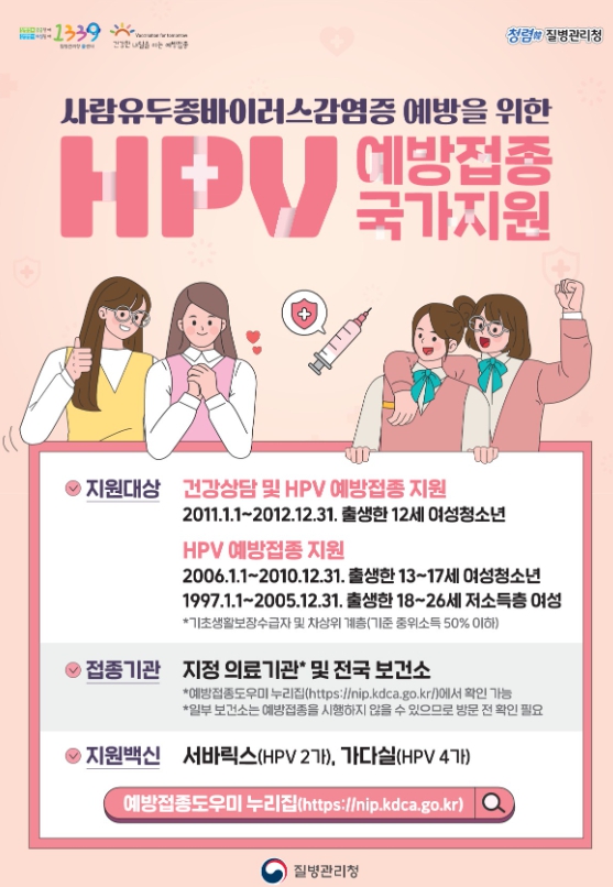 이번 연도 마지막 대상자(06년생 여성, 97년생 저소득층 여성)은 올해 12월 31일까지 무료 접종이 가능하다.