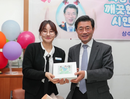 정 시장은 새해 첫 ‘광양시가 응원합니다!’ 행사로 안전한 수돗물 공급을 위해 애쓰고 있는 상수도과를 찾아 직원들의 노고를 격려하고 대화하는 자리를 가졌다.