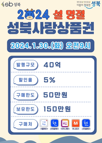 ![]() 성북구, 2024년 설 명절 맞아‘성북사랑상품권’발행 |