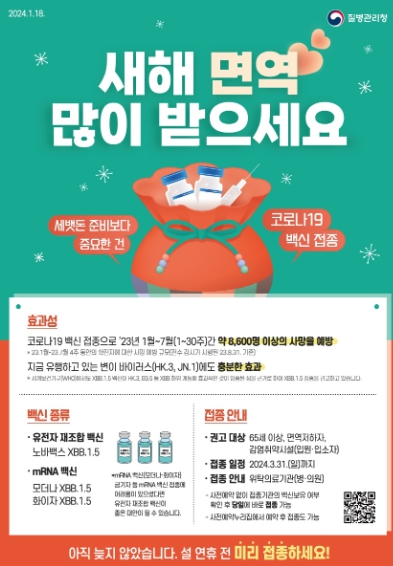 '23-'24 절기 코로나19 예방접종은 지난해 10월 19일부터 시작돼 올 3월 31일까지 운영되며 시는 귀성객들이 모이는 설 명절 전 집중 접종으로 코로나19 감염을 방지할 방침이다.