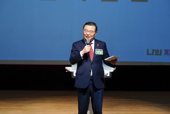![]() 류경기 구청장이 23일 열린 지역봉사지도원 발대식에서 경로당 회장들에게 감사의 인사를 전하고 있다. |