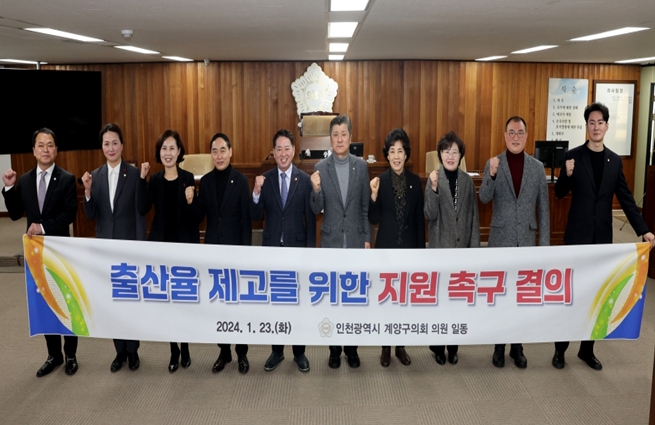 계양구의회는 결의안을 통해 ▶정부의 출산가정 지원 정책에서 소득 수준 제한 폐지 ▶출산과 육아휴직을 장려하는 사회 환경과 기업 문화 조성의 구체적인 추진계획 마련 ▶한국토지주택공사·인천도시공사와 적극적인 업무협약을 통한 신혼부부 및 다자녀 가구 주거 부담 완화 기금 조성 등을 요구했다.