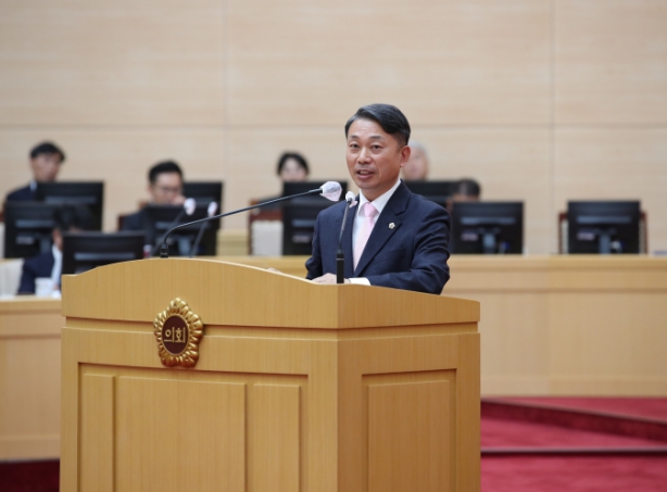 ![]() 이재태 의원이 1월 23일 열린 제377회 임시회 제1차 본회의 5분 발언하고 있다. |