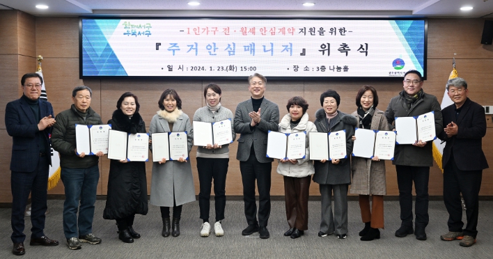 ![]() 광주 서구는 1인가구 전월세 안심계약 지원을 위한 주거안심매니저 8명을 위촉했다. |