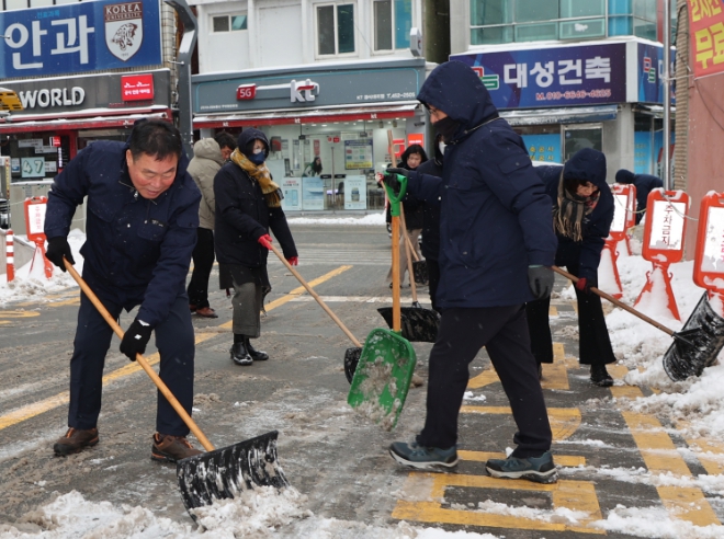 또한 김산 군수는 24일 전 직원에게 청사 및 시가지 주변 제설작업을 지시하고, 간부공무원와 함께 무안읍 시가지 주요도로를 제설하며 구슬땀을 흘렸다.