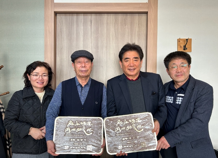 ![]() 왼쪽부터 김순희 여수시 문화예술팀장, 임병식(명예예술인), 윤문칠(명예예술인), 서채훈 문화예술과장 |