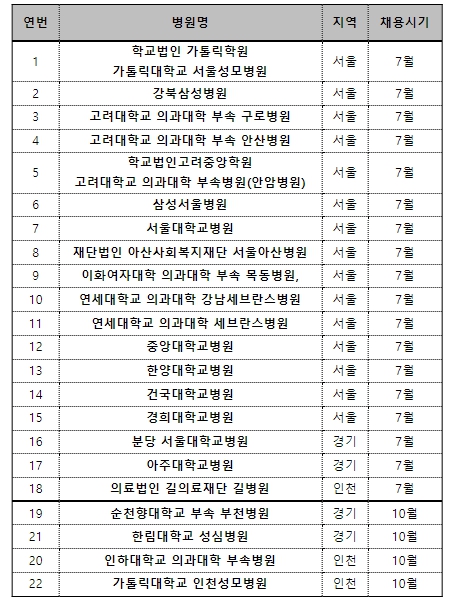그간 일부 대형병원은 간호사의 긴급 사직에 따른 인력 공백을 최소화하기 위해 신규간호사를 일시에 채용하고, 필요시에 순차적으로 발령해 왔다