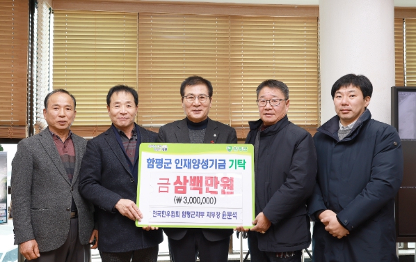 함평군은 지난 24일 “전국한우협회 함평군지부에서 3백만 원, 함평군생산가공자협의회에서 1백만 원을 함평군 인재양성기금에 기탁했다”고 밝혔다.