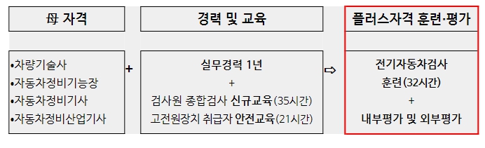 플러스자격 과정에 참여하고 있는 22명의 훈련생은 모두 자동차정비 기사‧산업기사 국가기술자격을 취득한 후 1년 이상 실무경력을 쌓고, 전기자동차 정비 관련 법정교육을 이수한 기술 인재이다. 이번 훈련과정을 수료하고 평가를 거쳐 합격하면, 보유 중인 기존 자격증에 ‘전기자동차검사 직무 플러스자격’이 기재되게 된다.