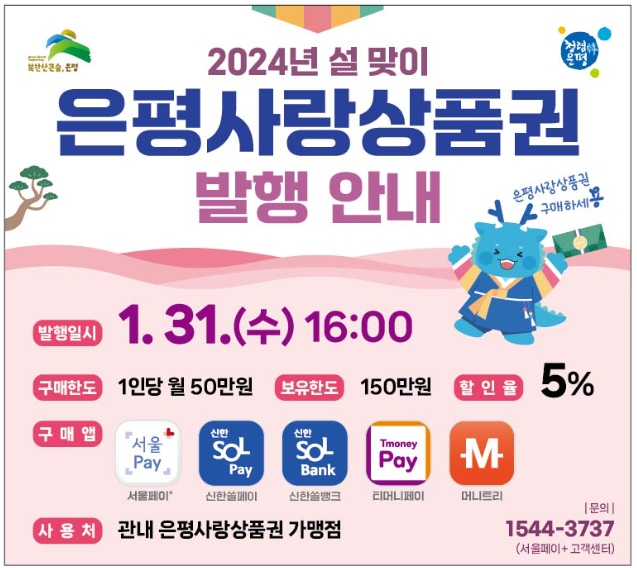 ![]() 은평구, 설맞이 ‘은평사랑상품권’ 40억 원 발행 |