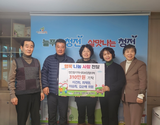 이번 성금은 2024년도 청전동 지역사회보장협의체 특화사업 추진 등에 사용될 예정이다.
