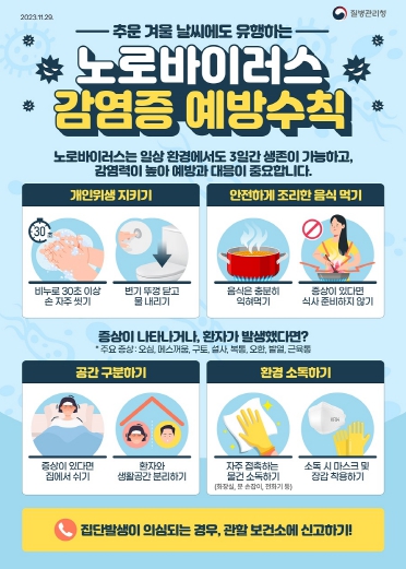 특히 겨울철 유행하기 쉬운 노로바이러스 감염증은 현재 최근 5년간 최고 수준으로 발생하고 있으며, 영유아(0~6세)에서 하기도 감염을 일으킬 수 있는 호흡기세포융합바이러스 감염증(RSV) 입원환자 수가 최근 4주간 지속적인 증가세를 보이고 있다.