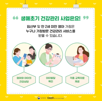 생애초기 건강관리사업은 전문교육을 이수한 간호사와 사회복지사가 출산 후 8주 이내의 가정을 방문해 심리사회적 평가를 실시한 후 기본방문과 지속방문으로 분류하고 건강상담, 영아 발달상담, 양육 교육 등 맞춤형 서비스를 제공하는 사업이다.